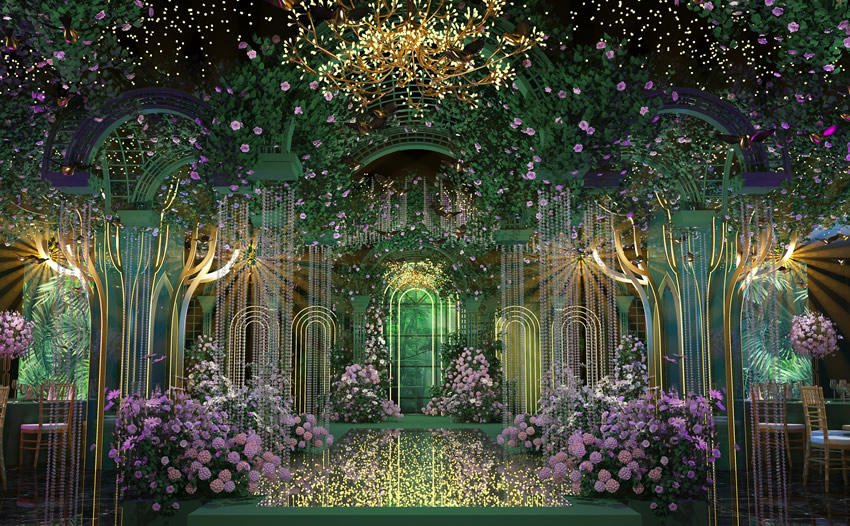 婚礼堂设计是一种专门用于举办婚礼和其他相关活动的室内设计。以下是一些关于婚礼堂设计的建议: